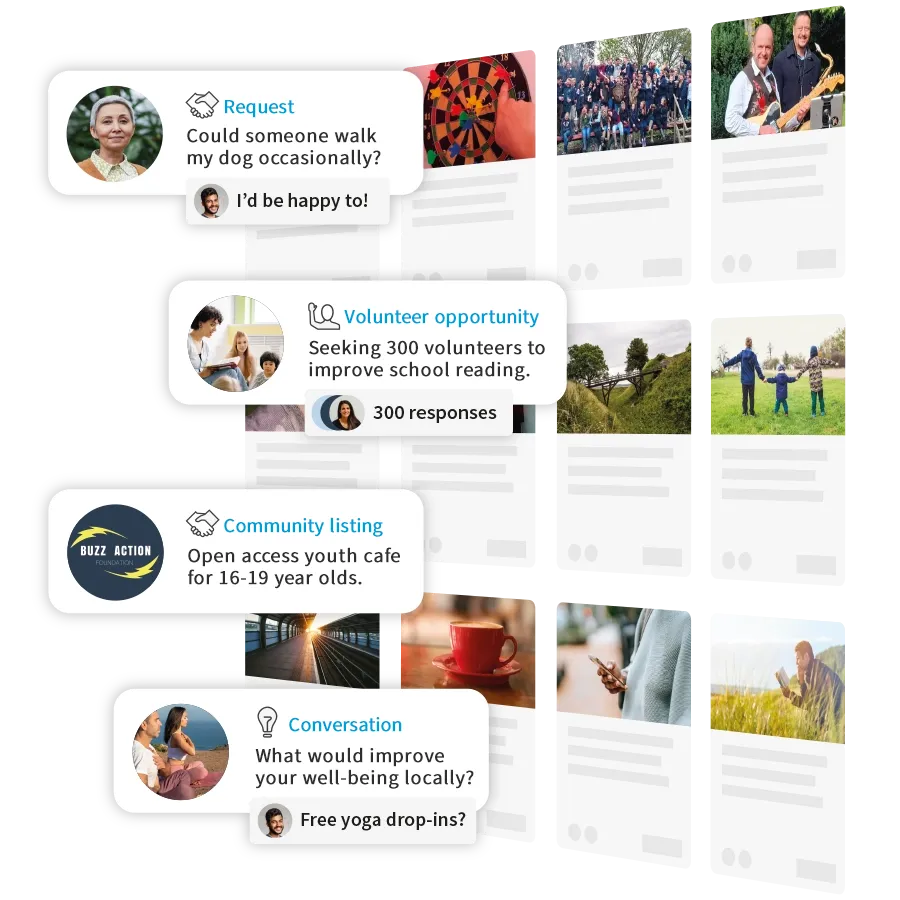 People often struggle to find up-to-date information about available support or services, while groups and organisations often struggle to recruit volunteers.